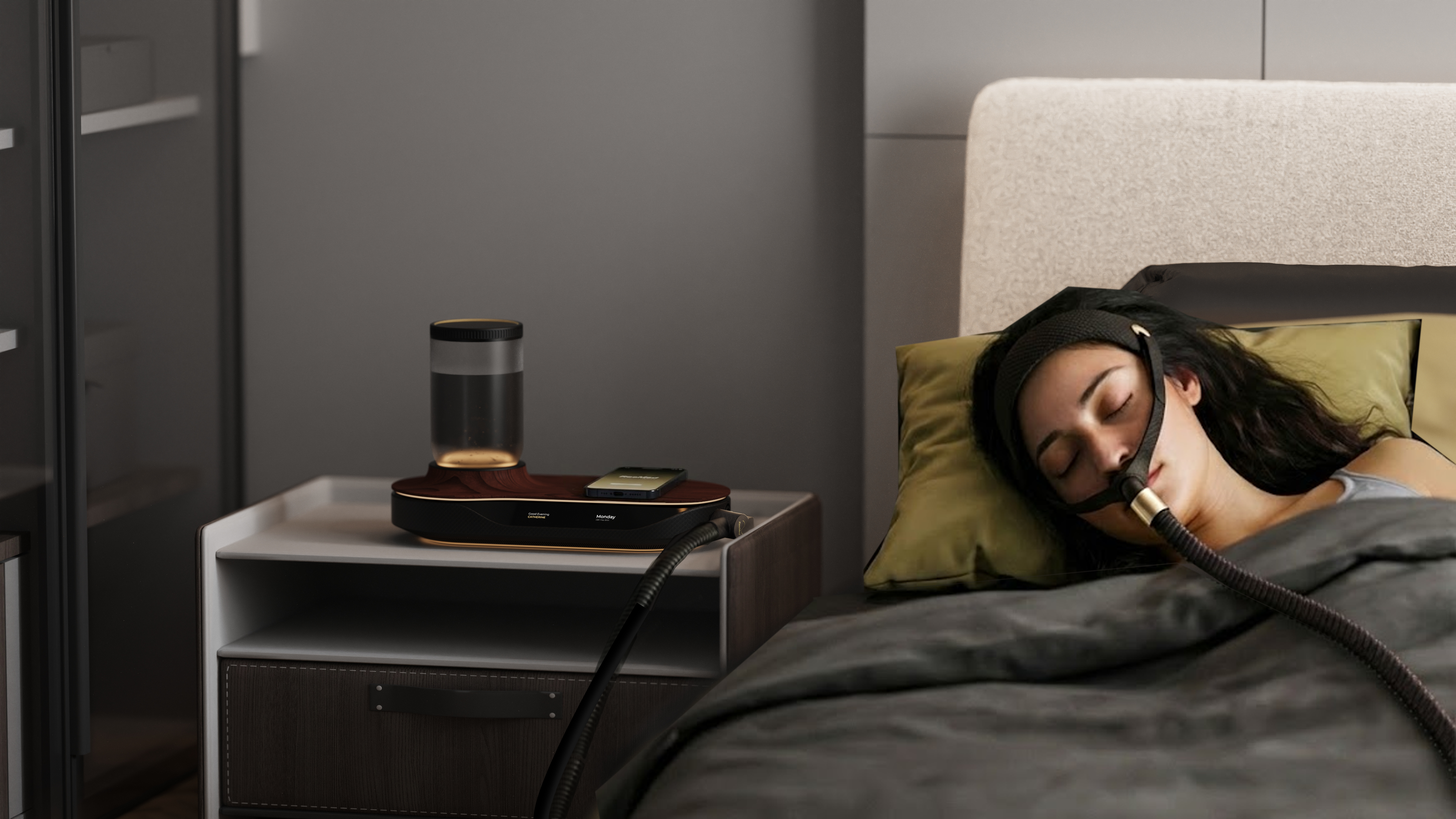 Premium CPAP experience designed for her, which blends into the nightly skincare routine and uplited sleep experience.