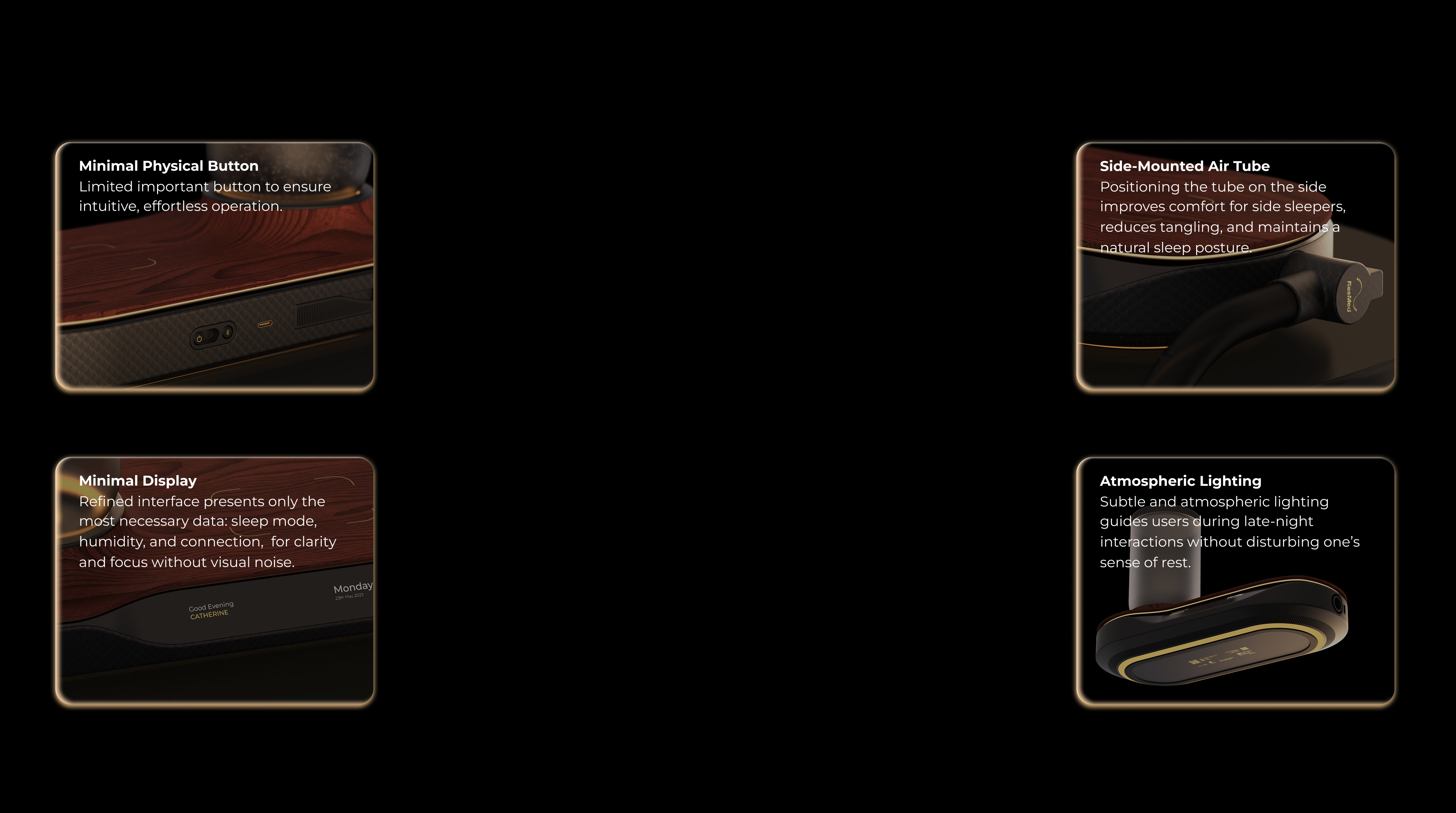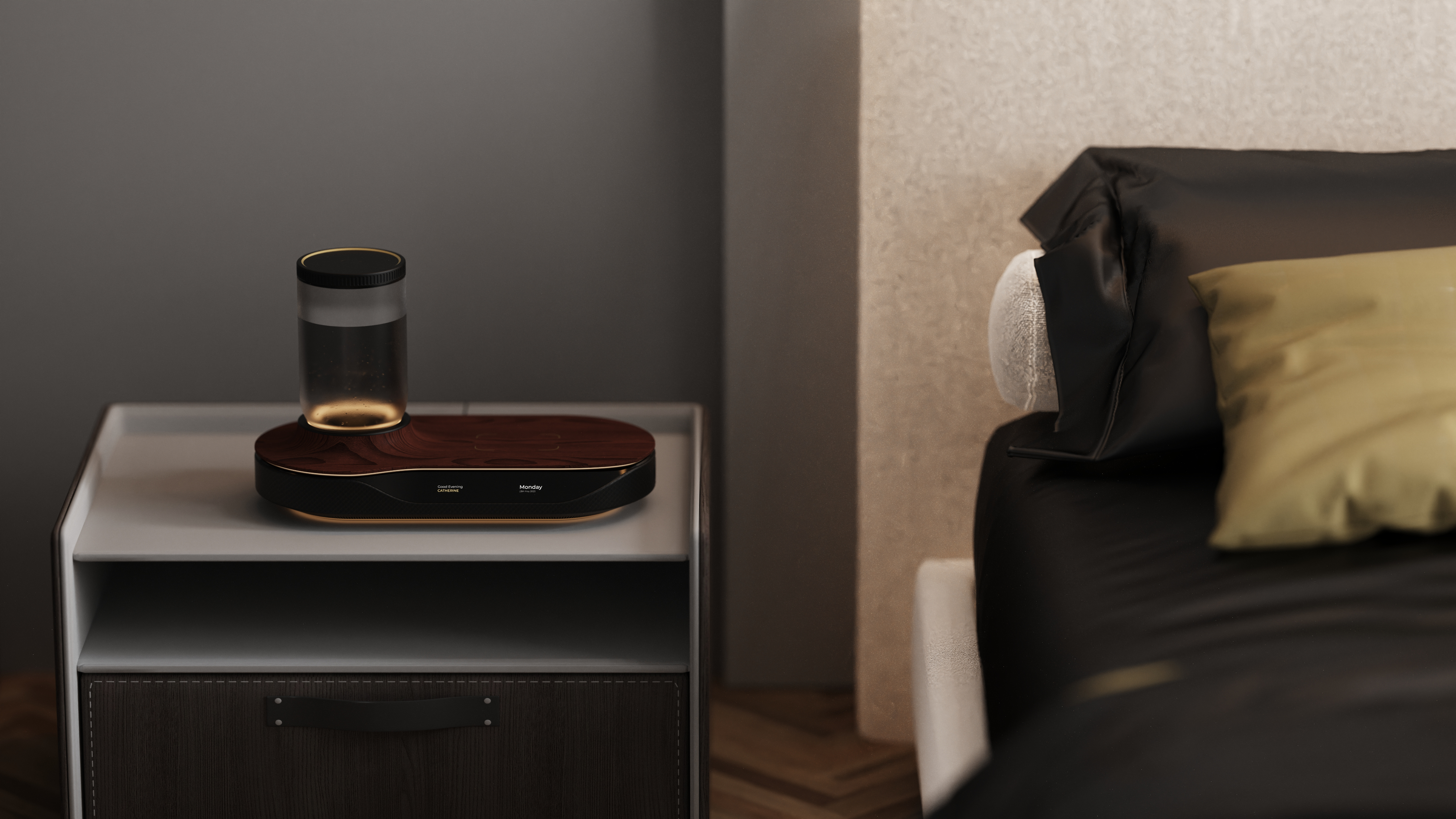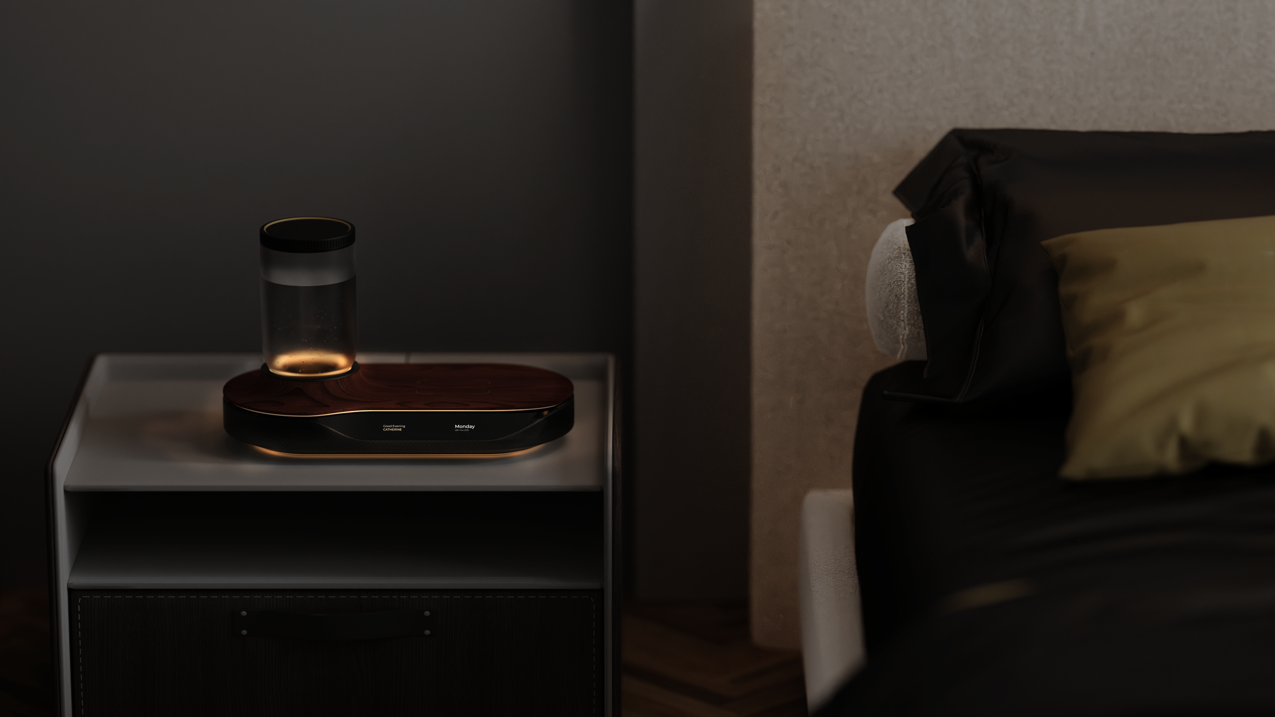 Subtle and atmospheric lighting guides users during late-night interactions without disturbing one’s sense of rest.