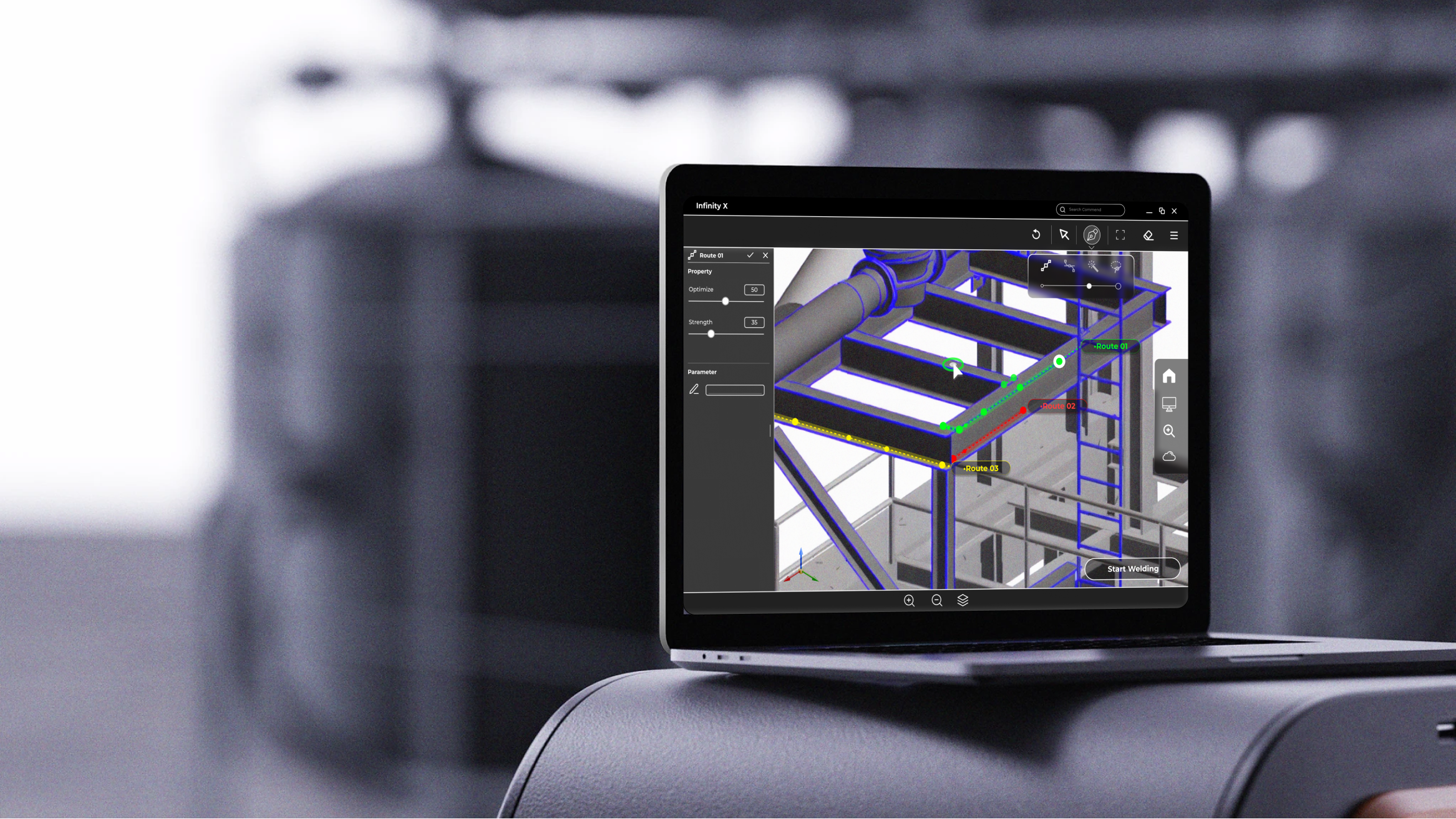 Welder can review the 3D model scanned by drone and create welding routine through the program on computer.