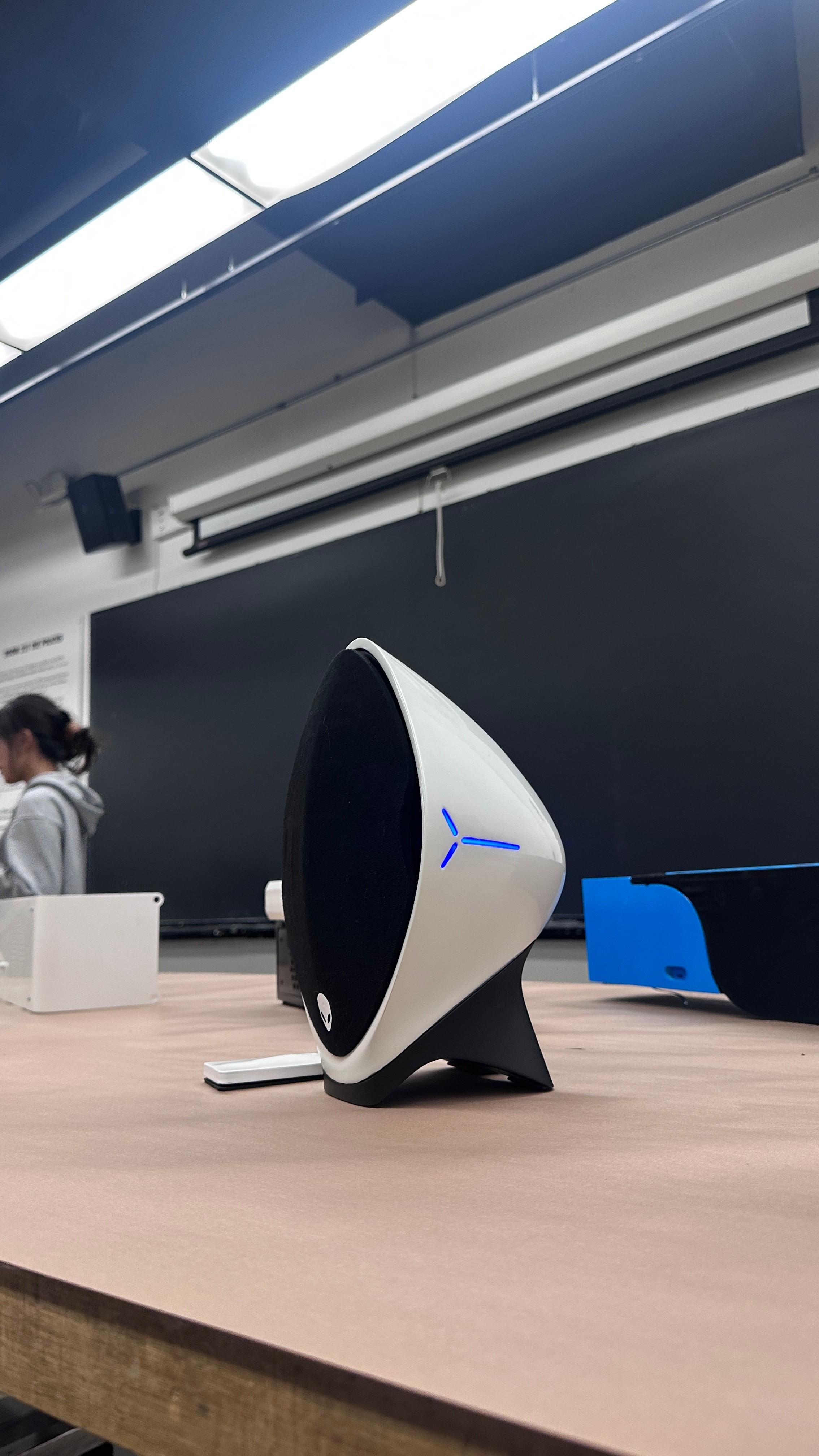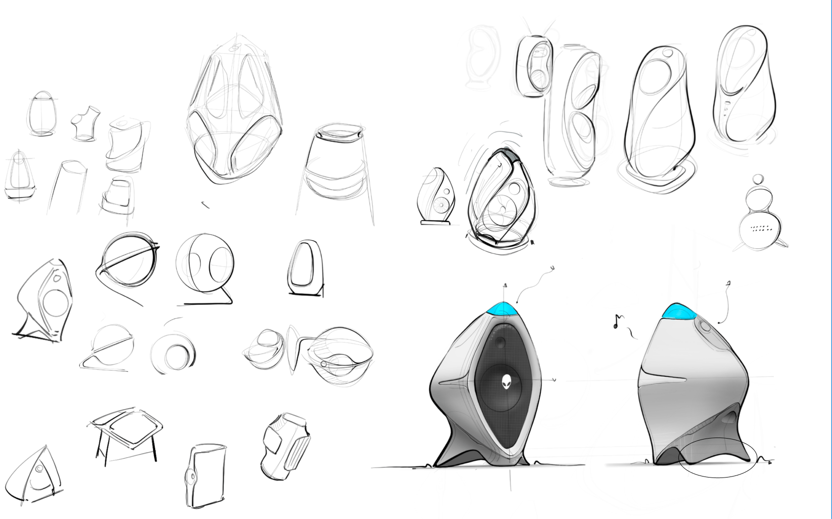 Nebula explores a futuristic audio device inspired by Alienware’s space-age design language. Beyond its sculptural form, the speaker is fully functional, featuring an internally developed acoustic architecture that rethinks sound direction, enclosure geometry, and component layout.